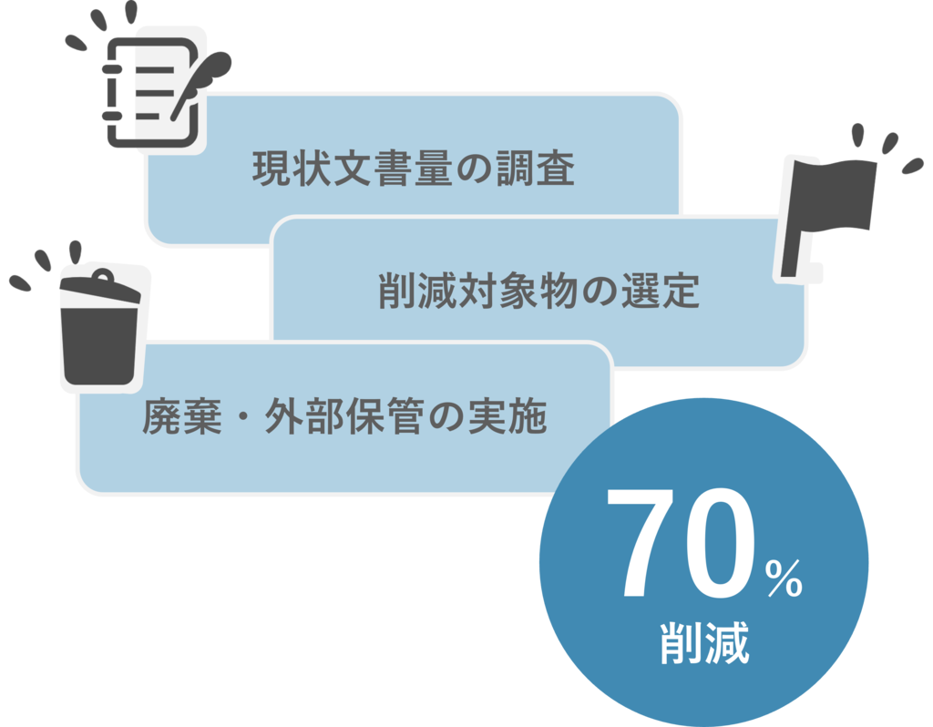 面積は60%ほどになりましたが、大幅な文書削減を実施し、