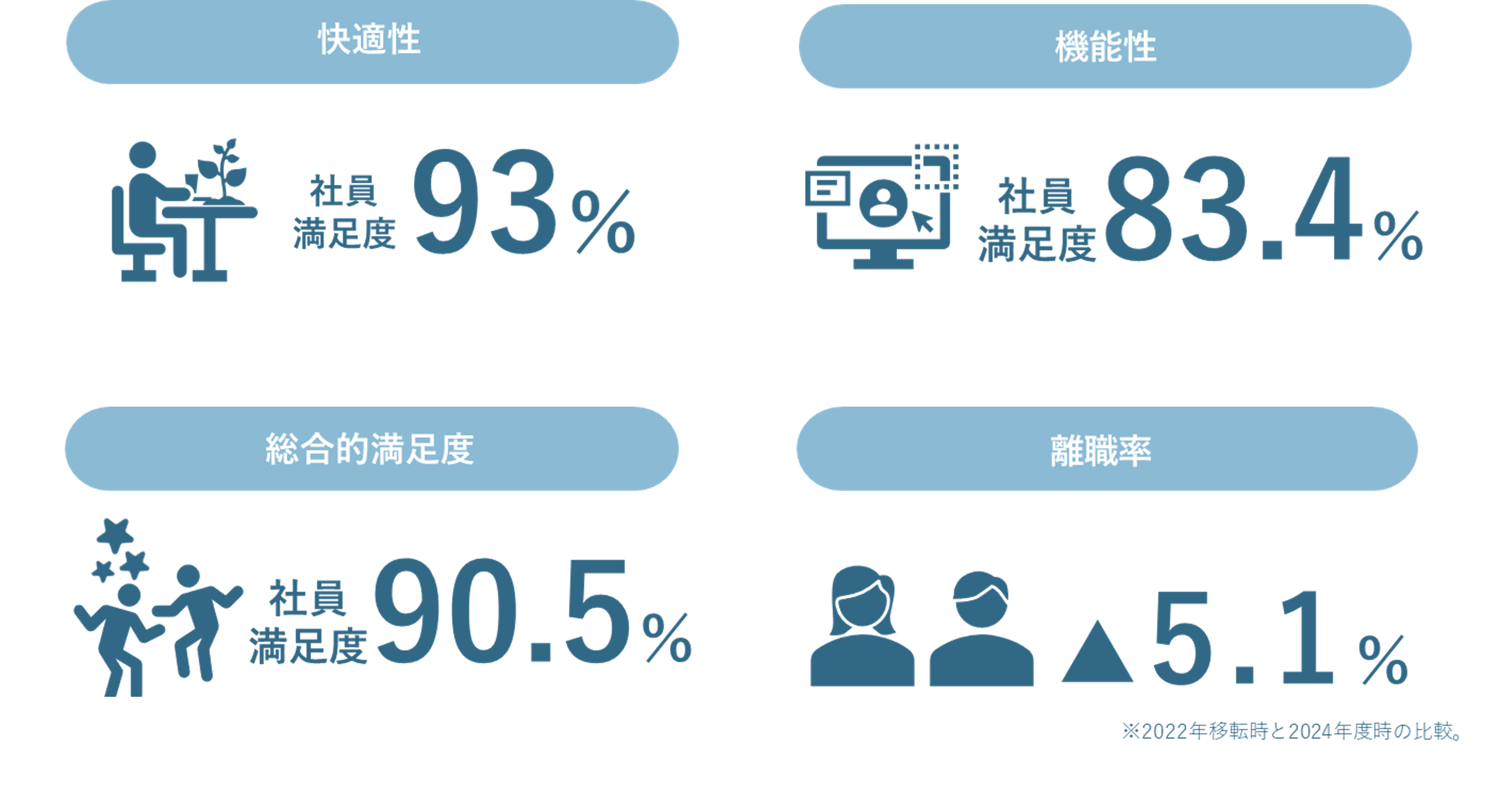 Before-Afterのプロセスをご案内いたします。実際に従業員が働いているオフィスになりますので生の声を聞いていただく事も可能です。
